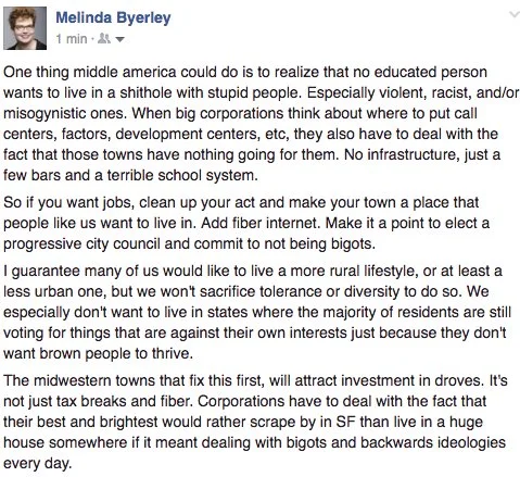 /This awful woman from San Francisco claims to be CEO of a marketing firm. Given the number of likes to her post, it seems that her peers agree. Fine with me.