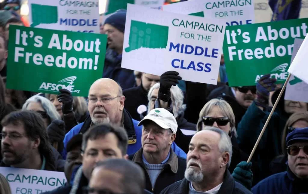 /In a bit of unintended irony, state workers turn out in support of their long-suffering fellow residents