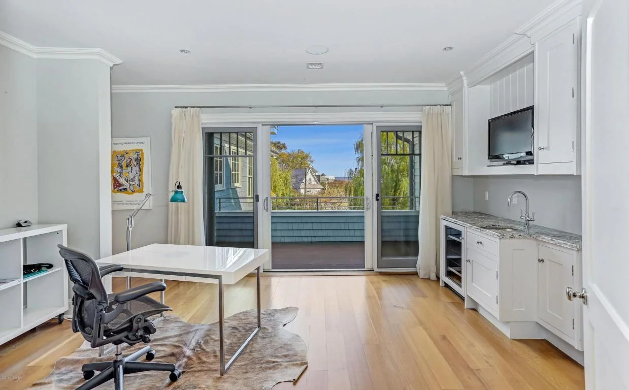 This was a Mark O'Brian house, built in 2009, priced at $7.995 and sold in 2010 for $6.625, and was, and remains, a very decent bit of construction. It has its difficulties: frontage on a busy (when the beach is open) road, neighbors, with driveway, between it and the water, but the design works really well, including glass wall doors that fold to create an open flow between the interior and the terrace outside, creating a great environment for summer parties. I wasn't at all surprised that it sold for what it did..