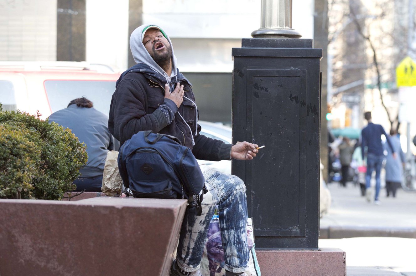 The NYPD identified the crooner as Damond Hood, 41, and said he had been busted 15 times since 1999, most recently in February for trespassing inside a nearby 7-Eleven store. He was also hauled off to the hospital for acting out on March 1 and March 8, cops said.
