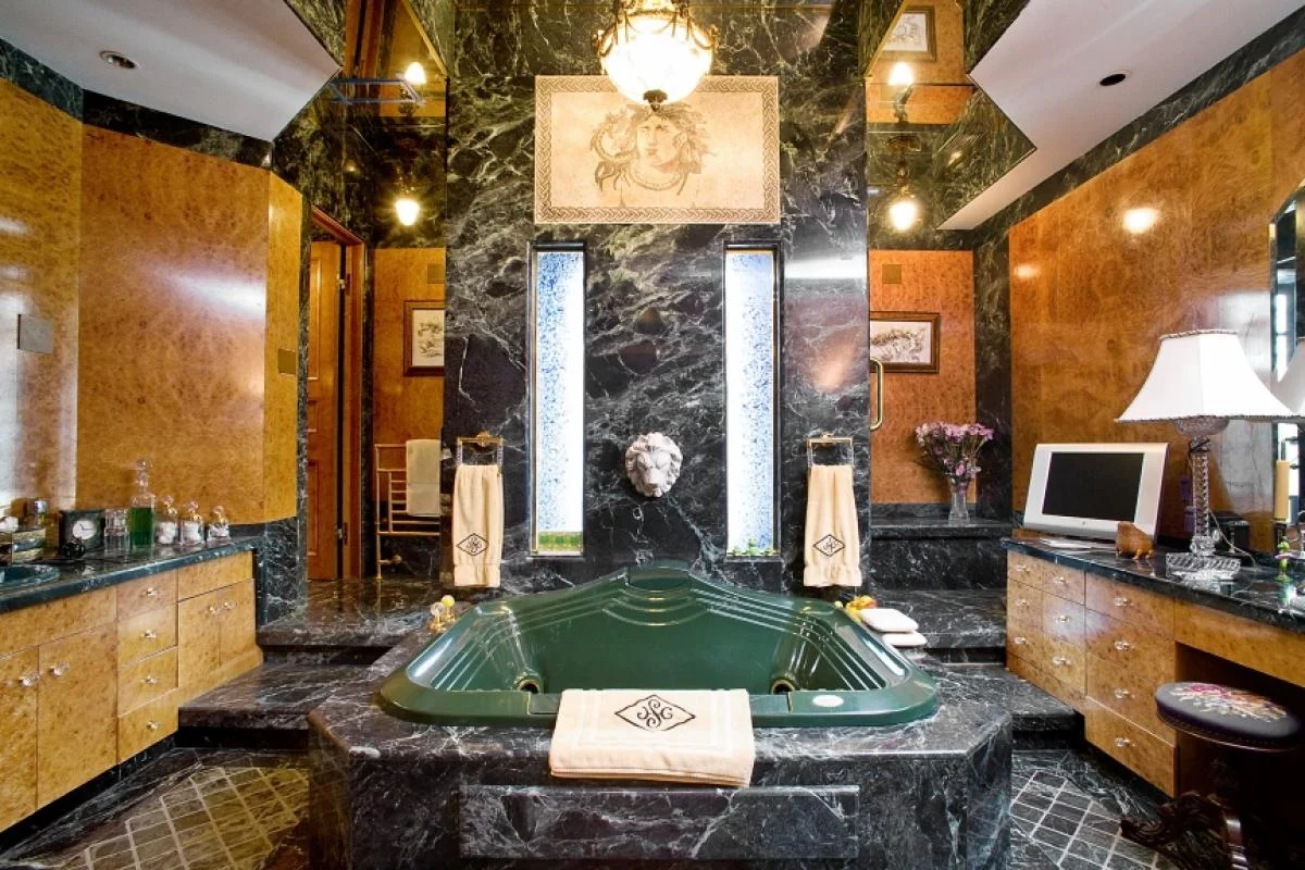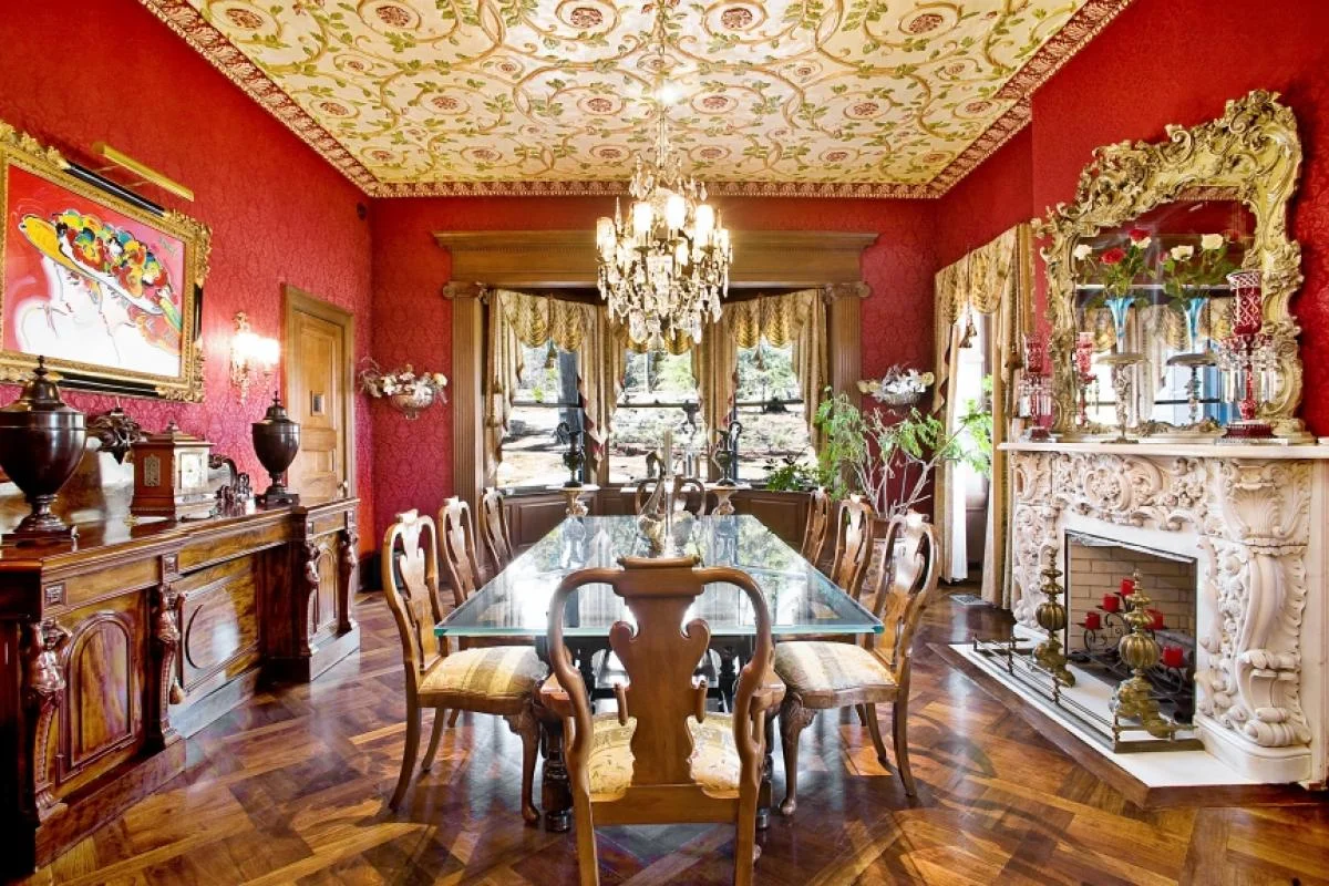 In trying to justify both that first price and its then-current one, the listing agent pointed out all the work that had been done over the past twenty-five years restoring the derelict place, (including the installation of "a telephone in every bathroom", which strikes me as gross, at least for anyone listening on the other end, and superfluous, now that cellphones are everywhere), work that ultimately ran into the "multi-millions". "One worker stayed here 41/2 years [just] finishing the ceiling work," the agent explained, as she insisted that she and the rest of her sales team had set the price just right:
