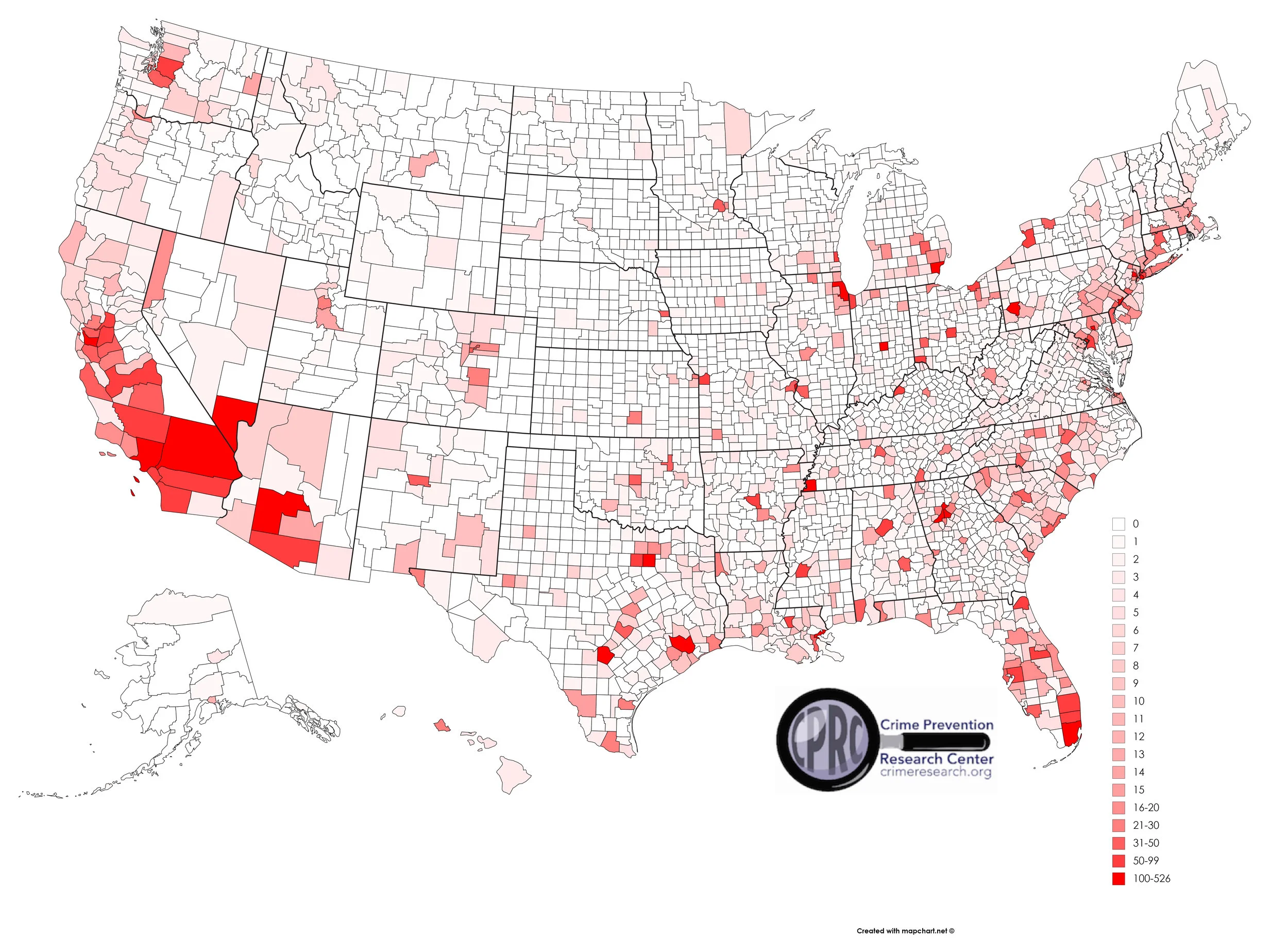 When you look at individual counties with a high number of murders, you find large areas with few murders. Take Los Angeles County, with 526 murders in 2014, the most of any county in the US. The county has virtually no murders in the northwestern part of the county. There was only one murder each in Beverly Hills, Hawthorne, and Van Nuys. Clearly, different parts of the county face very different risks of murder.