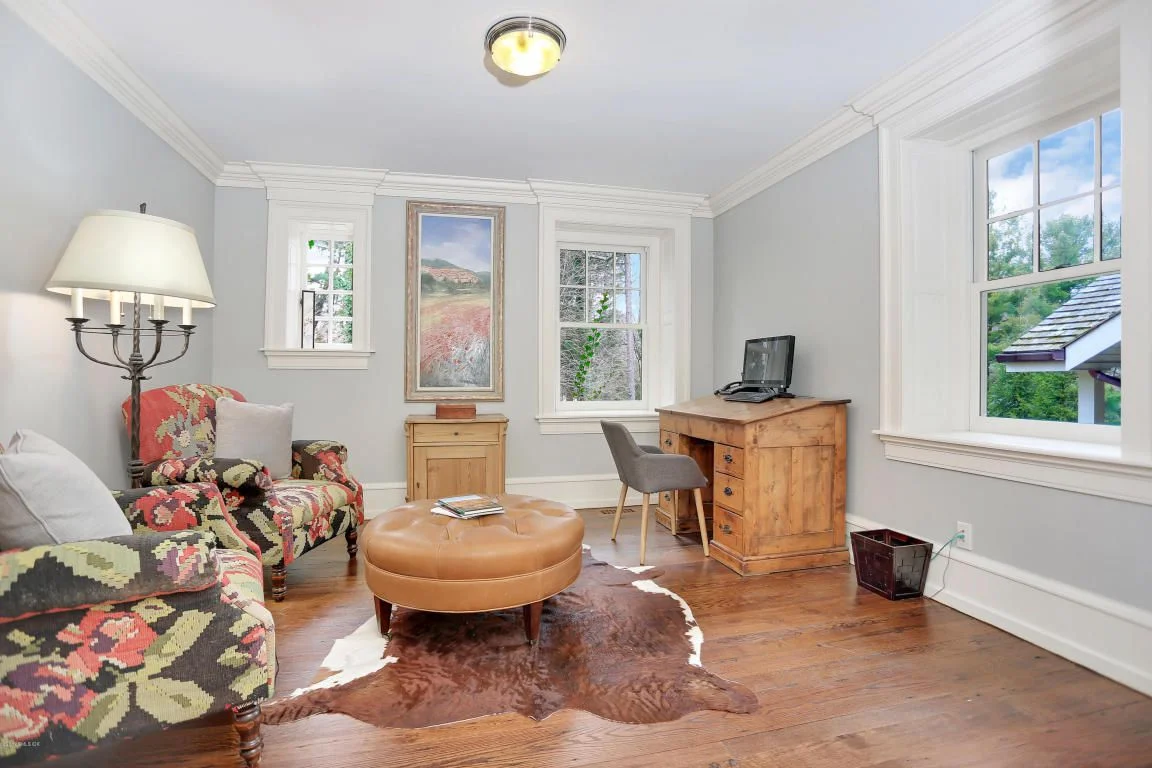 not that a flat screen tv would have been appropriate here, but a thrift shop mirror seems cheesy. the stager must have agreed because ...