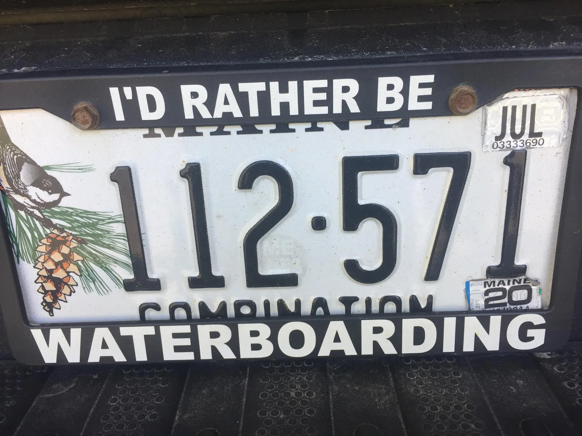 (UPDATE): EOS, I’m still having difficulty posting pictures in the comments section, but in response to yours about license plate frames, here’s mine: Son John pointed out to me, “Dad, 90% of the people who see that won’t get it”. I replied, “yeah, but it’s the 10% who do who are the ones I want to annoy”. He paused, then said, “that’s so efficient”. I miss that boy.