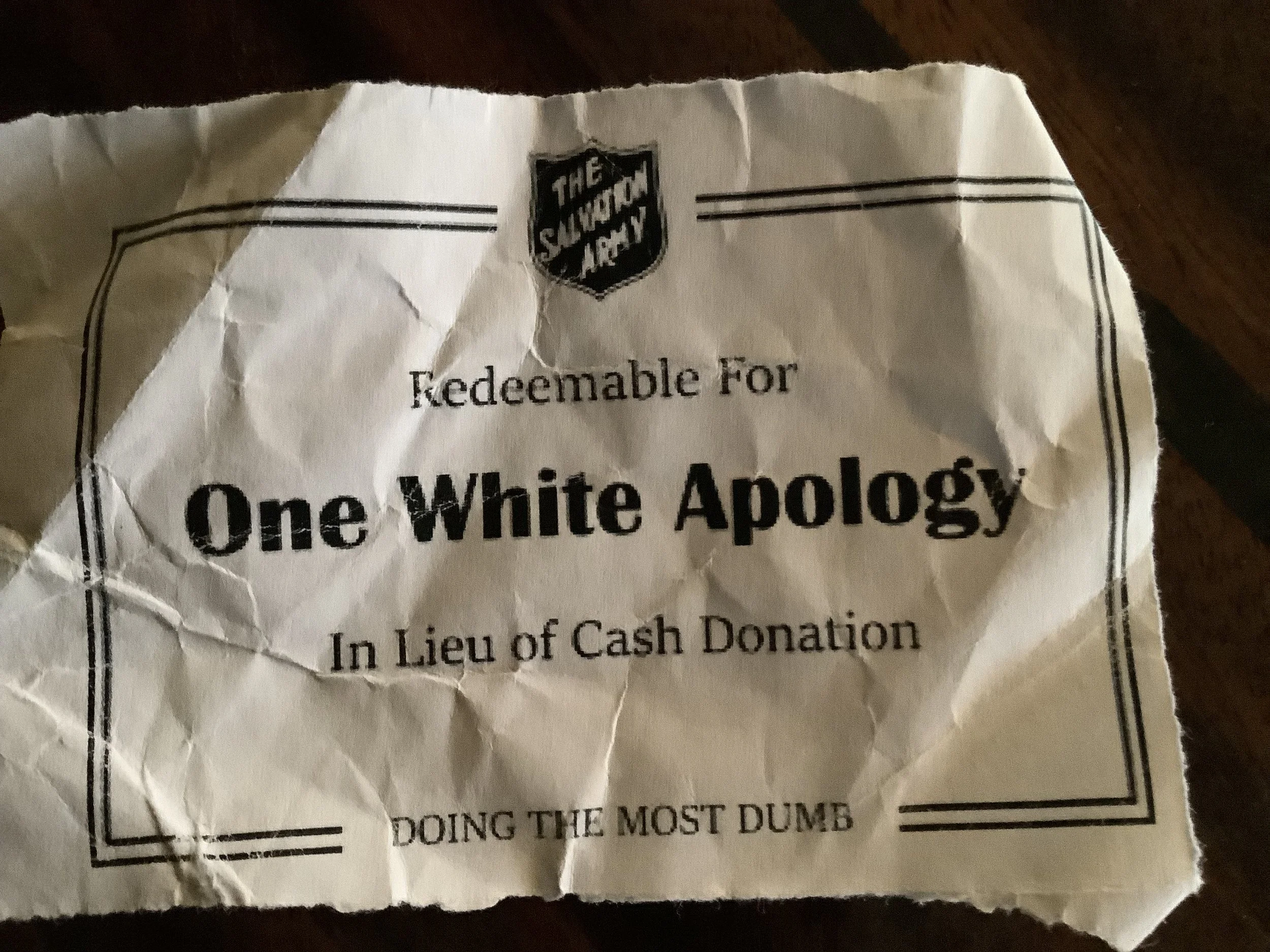 /“Gideon went to a Squadron A luncheon Friday. They were handing these out to be tossed in the red kettle outside.”