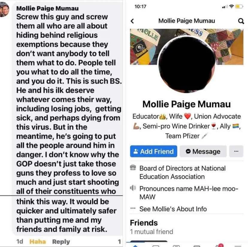 December 07, 2021 Defund Public Schools December 07, 2021/ Chris Fountain Pennsylvania Teacher And Board Member For The Nation's Largest Teachers' Union Says Those With Religious Exemptions From Vax Should Die Or Be Shot