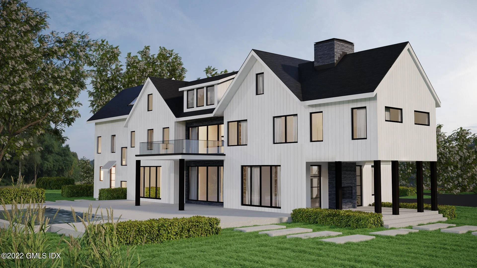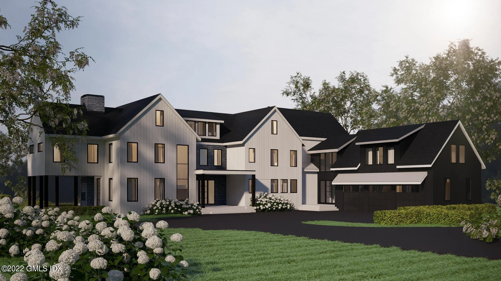 /121 Lower Cross Road is under construction and has been listed today at $9.495 million. The artist’s renderings show that it’s been designed in the “modern farmhouse” style (my description; perhaps there’s another, AIA-approved term), just like, it seems every other house that’s been going up recently. And not just in Greenwich: I’ve seen pretty much the same house in Massachusetts, Maine, and New Hampshire which makes me curious. Is this the only design being taught in architectural schools these days, or is this what buyers are demanding?