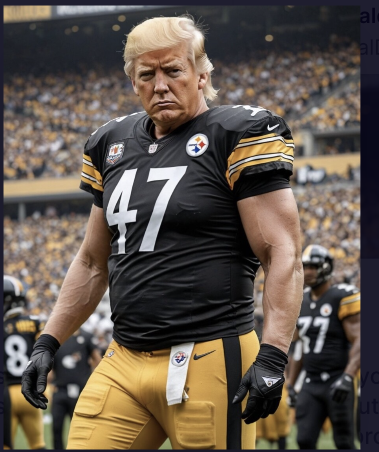 However, the image posted on Truth Social depicts Trump on a football field wearing a jersey for the Pittsburgh Steelers — there is no evidence this ever occurred.