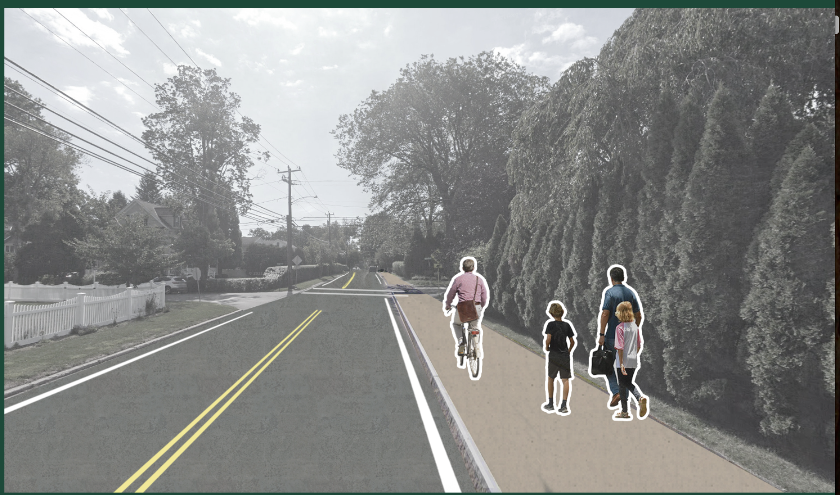 The trail itself will take the form of a 10’ wide paved pathway but also rely on painted bike lanes and shared lane symbol markings within the roadway to fill gaps where a 10’ wide pathway is not practical.