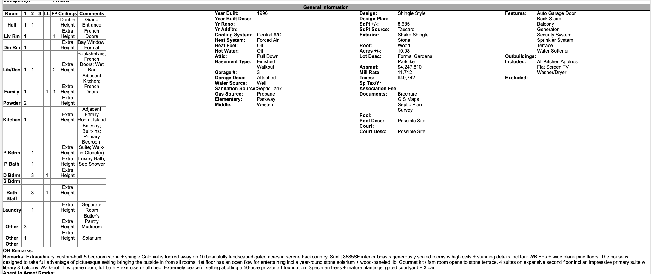 /118 John Street, built in 1996 by (well, for) the founder of the Seven Bridges Foundation, the late (February 28, 2025) Richard McKenzie has been listed for sale at $8.250 million. 8,635 sq.ft., with an additional 3,767 sq. ft. in the unfinished basement, if you feel squeezed for space, on 10 acres, it adjoins the foundation’s 50 acres, so you’ll have plenty of undisturbed privacy. (An interesting snippet of the foundation’s history can be found here).