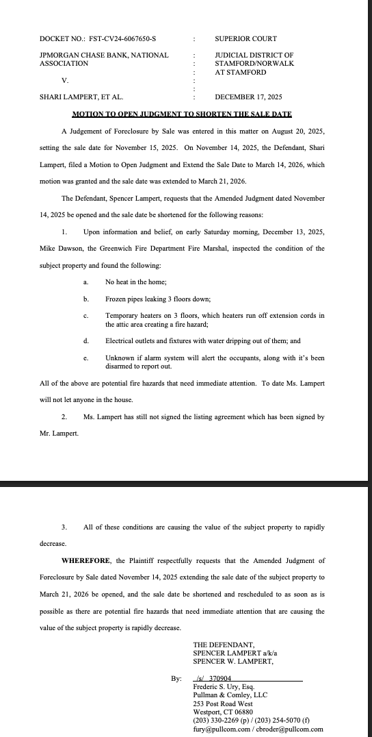 /8 Old Round Hill Lane, to be exact, newly listed at $8.995 million. The owners purchased it for $10.1 million in 2008 from an individual who’d paid $9.5 million in 2005. The couple divorced in 2014, but they both signed on to an $18 million mortgage (down to $4 million + now), so they’re together again, if only in Stamford Superior Court. (A familiar place — Ms.Lampert has kept the halls of justice busy ever since and, 12 years later, is still at it. (NTTAWWT).