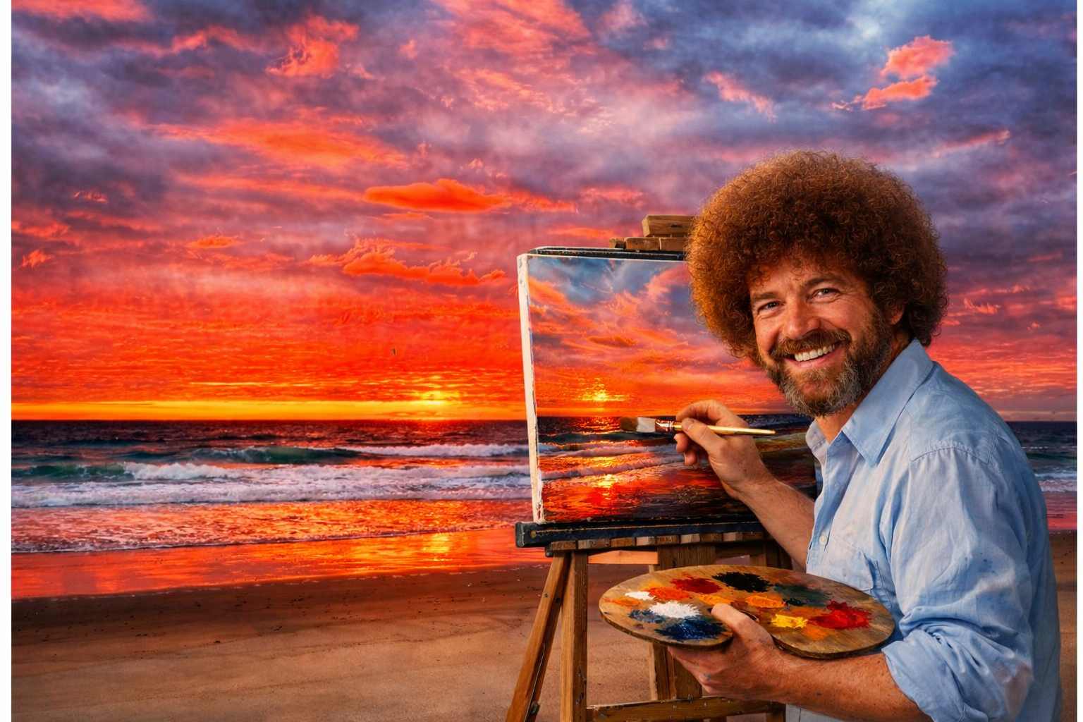Publius has caught me out: “I think that is a fake post... it is a picture of a Bob Ross painting....”. Right you are, Publius, and I apologize for my duplicity. Here’s the real picture, with the camera pulled back to show the actuality: