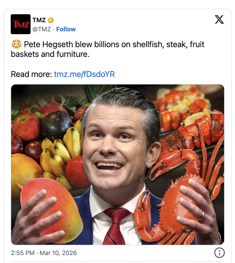 HEGSETH BLOWING $93 BILLION OF TAXPAYER DOLLARS IN 1 MONTH !! pic.twitter.com/L8GmyWQ2bt