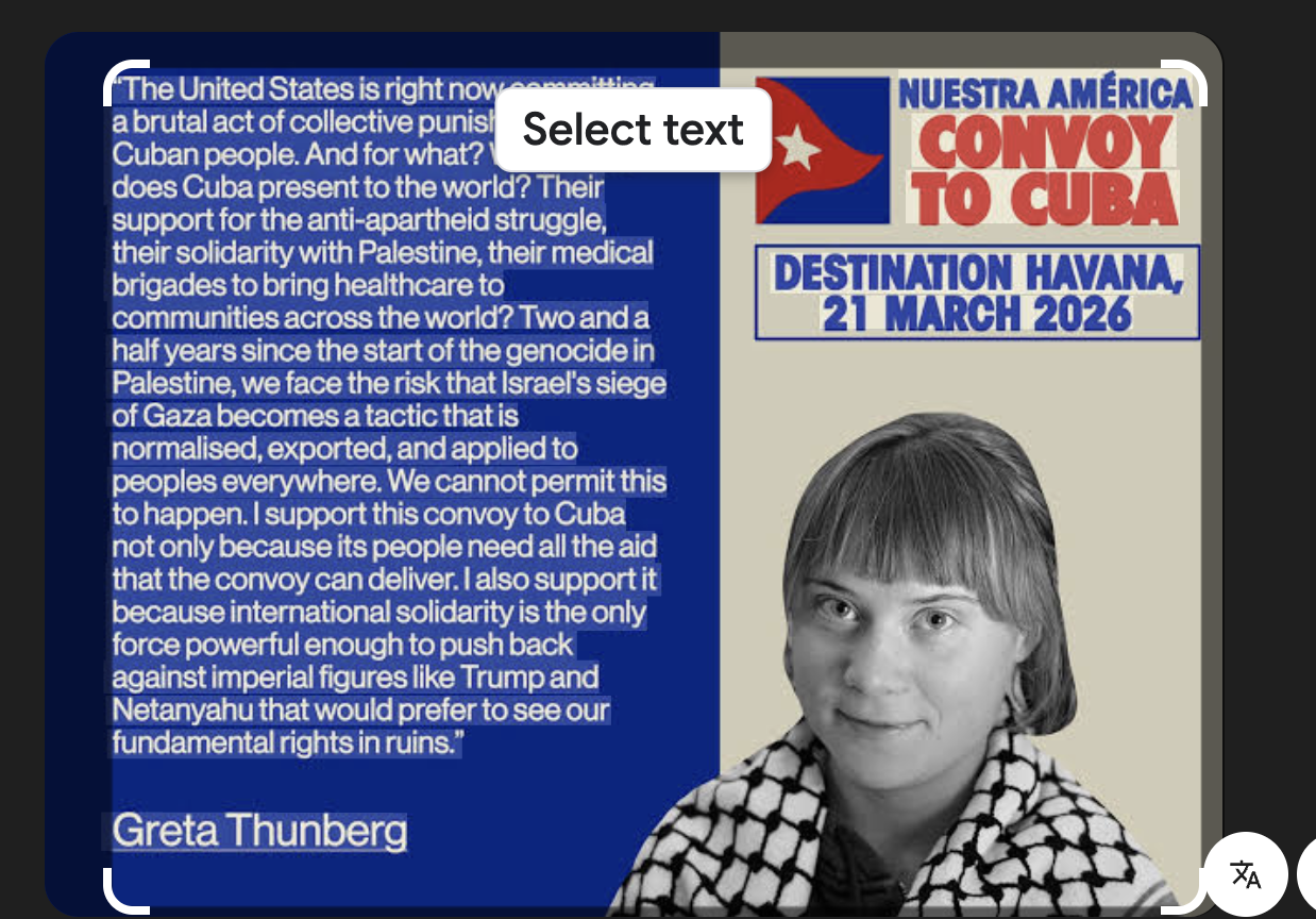 UPDATE: Too funny; I went to the Nuestra America Convoy’s web site with an idea of grabbing a screenshot, and then using AI to insert a picture of Greta, but of course, she’s already there! Should have known.