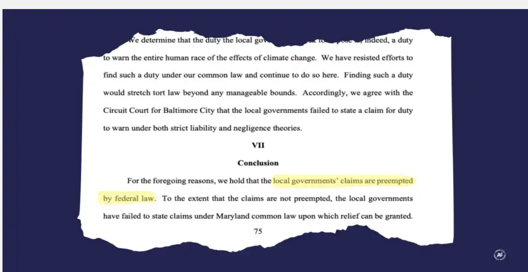 In the latest blow to the climate cult, the Maryland Supreme Court has BLOCKED blue cities in MD from suing energy companies over global climate change. The court made it clear: states/local governments can’t use lawsuits to regulate or seek damages for global climate change.You can read the ruling here: https://www.mdcourts.gov/data/opinions/coa/2026/11a25.pdf