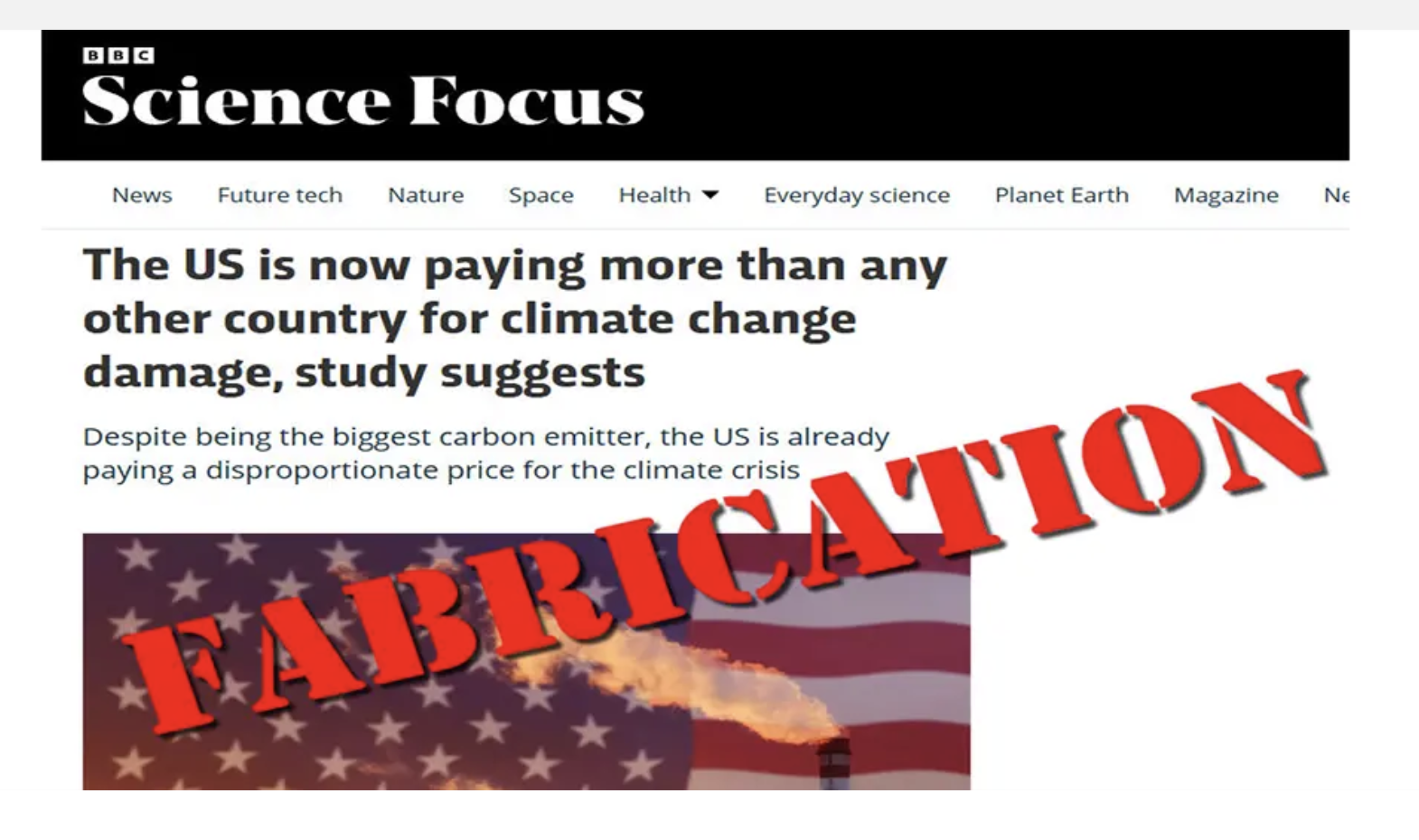 The recent British Broadcasting Corporation (BBC) Science Focus publication “The US is now paying more than any other country for climate change damage, study suggests,” claims that the United States is “now paying more than any other country for climate change damage,” citing a study estimating $16.2 trillion in U.S. losses since 1990. This is a fabricated falsehood. Decades of peer-reviewed research on disaster losses show no detectable long-term trend in normalized weather-related losses attributable to human-caused climate change and the BBC is wrongly conflating weather with climate.
