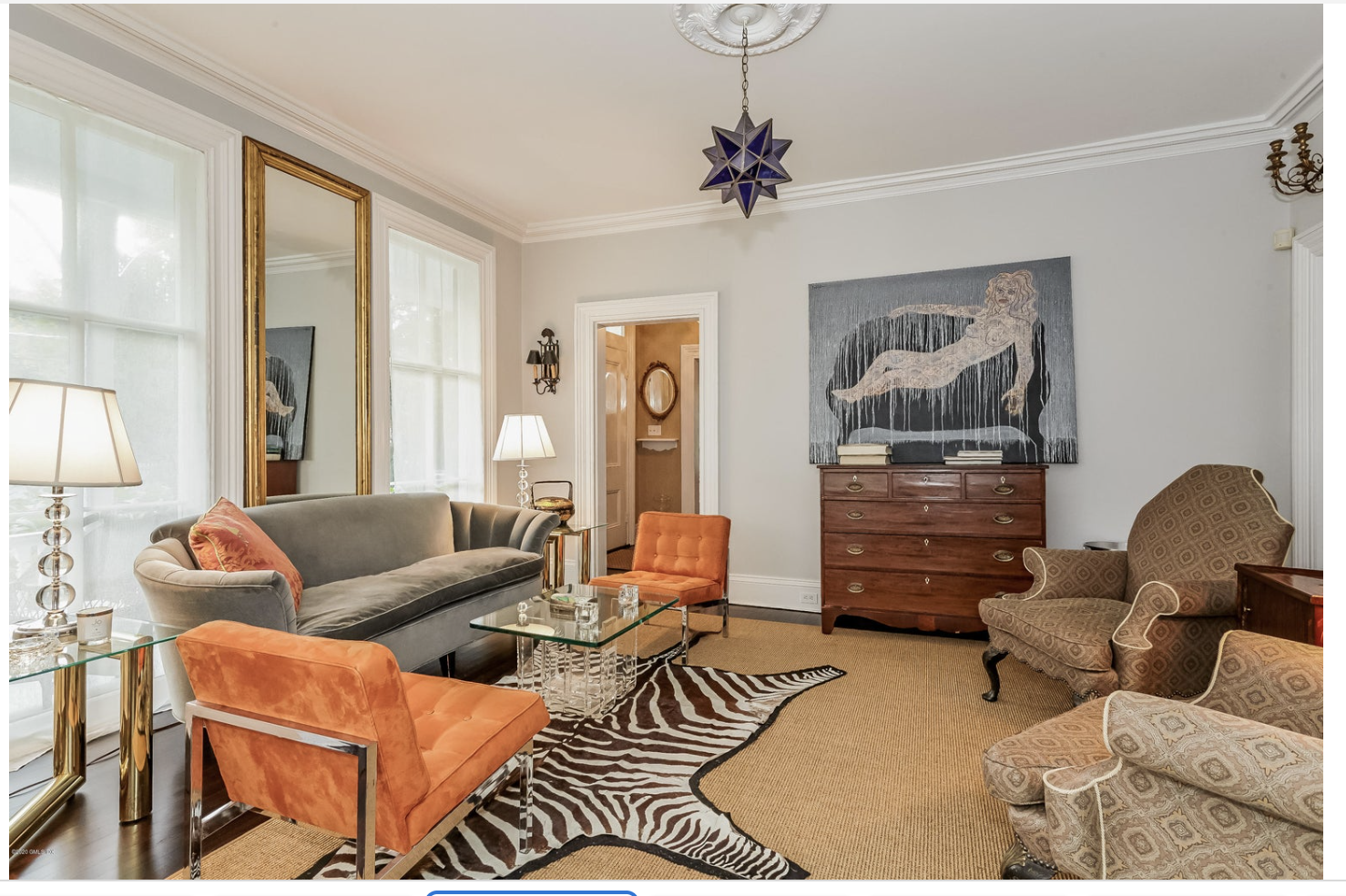 /322 Riversville Road, on and off the market since 2012, is reported under contract. Current ask is $2.395 million, close to the $2.495 it sought 14 years ago. Built in 1845, its location in the shadow of the Merritt Parkway hasn’t helped its chances, but the real problem, as I’ve seen it, is that it’s been decorated like a New Orleans whorehouse all during its stay on the market, and although that might have worked with buyers in 1845, it’s a turn-off now.