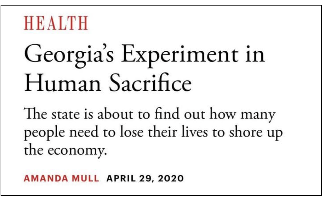 COVID SIX YEARS AGO TODAY: Actual headline (still up) at The Atlantic — Georgia’s Experiment in Human Sacrifice.